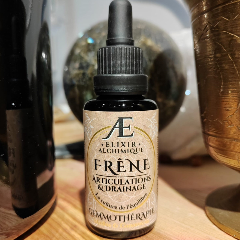 - Bourgeons de Frêne (Fraxinus Excelsior L.) frais mis en macération à l’instant de la récolte, en phase de pleine croissance (3,33 gr. pour 30 ml soit 11% de jeunes pousses fraîches)